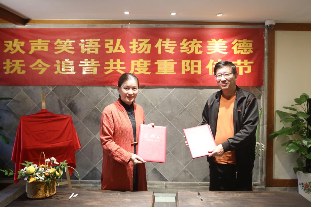 为弘扬传统美德,共度重阳佳节,10月13日上午,我校与苏州花山自然风景区共建“美育教育校外实践基地”签约揭牌仪式暨共度重阳佳节活动在花山自然风景区举行。学校党委副书记、副校长丁志卫,太湖风尚酒投公司总经理吴斌,苏州花山自然风景区、花山隐居酒店总经理蒋彩云,学校工会主席杨方,金融科技学院相关负责人,荣退二线、荣休教师及师生代表70余人参加活动。此次活动由服务外包学院工会、关工委,工业技术学校工会主办,金融科技学院承办。活动由金融科技学院党总支书记、院长杜梓平主持。