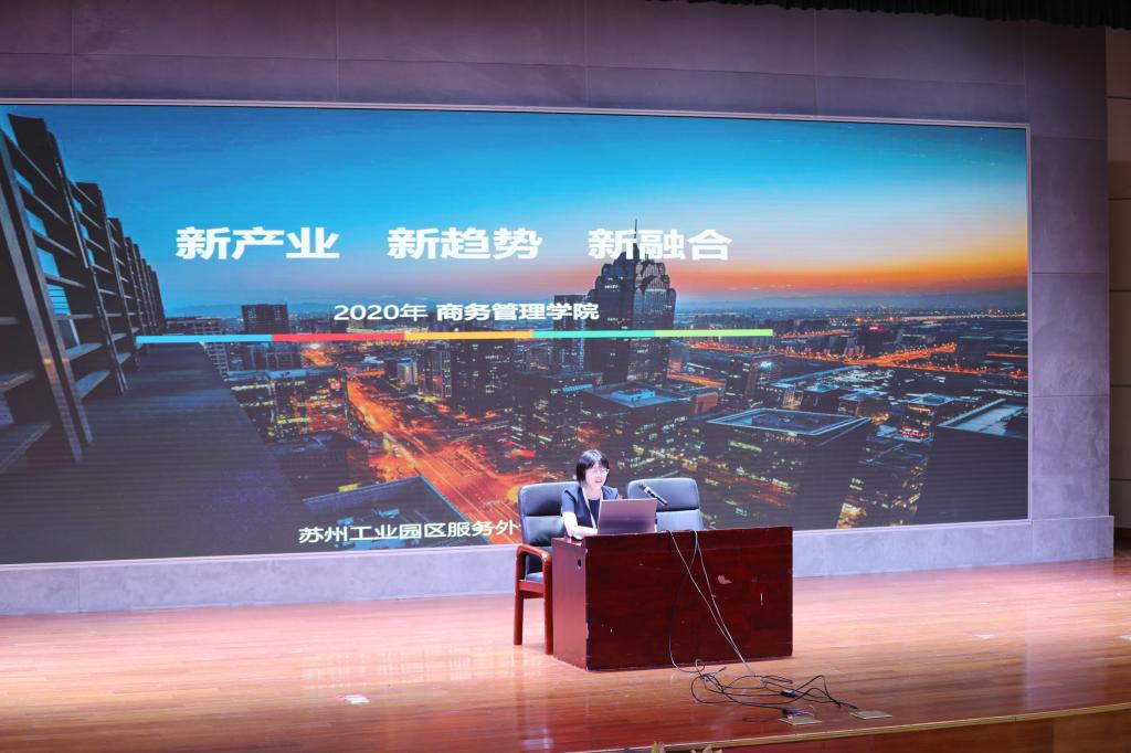 商务管理学院党总支书记、院长宋翠玲做了《新产业、新趋势、新融合》专题讲座,带领学生了解了在当前时代发展背景下,如何在学校里学有所成。学院党总支副书记、副院长于海娟,副院长丁强就各自分管的学生工作及教学工作做了介绍,并就新学期学习及工作的注意事项做了详细阐释。