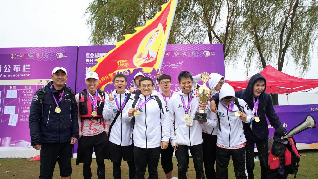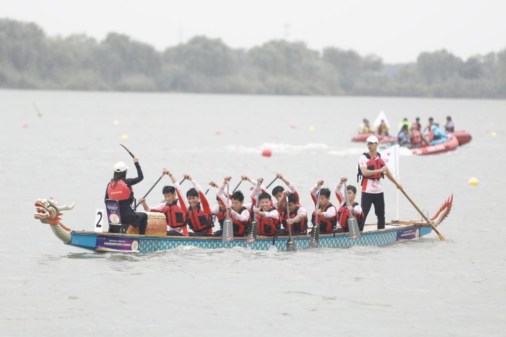 本次大赛共有来自国内外68支龙舟队1364名运动员开桨竞渡。在一片鼓声擂动、人声鼎沸中,我校龙舟队顶着大风大浪奋勇挥桨,动作整齐划一,乘风破浪、勇往直前,最终一举夺冠,充分展现了我校师生的青春风采,彰显了同舟共济的团队合作精神,以及团结、协作、拼搏、进取的龙舟精神。