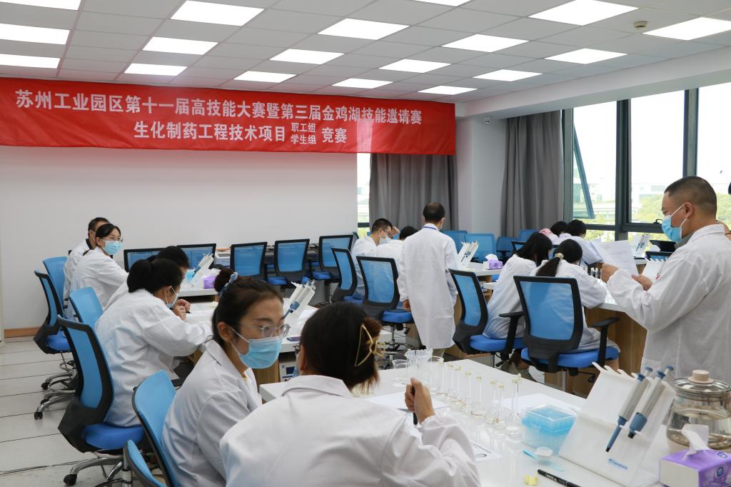 10月30日、31日,第十一届高技能大赛暨第三届金鸡湖技能邀请赛——生化制药工程技术项目(职工组、学生组)竞赛决赛在我校举办。本次大赛由苏州工业园区管理委员会、苏州市人力资源和社会保障局、苏州市总工会主办,苏州工业园区服务外包职业学院协办。赛项具体由我校生物科技学院(苏州(工业园区)生物医药公共实训基地、苏州工业园区生物医药高技能人才公共实训基地)、合作交流中心承办。