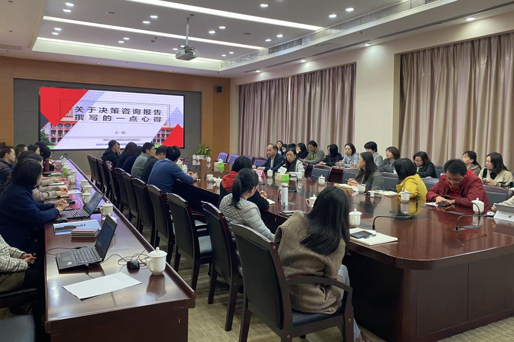 整场讲座条理清晰、重点突出,对于我校教师撰写决策咨询报告以及从事社科应用研究具有较强的指导意义。我校将持续通过社科研究人才与项目的培育,充分发挥学校在社科研究、咨询服务等方面的优势,产出高质量社科应用成果,为区域经济社会发展提供理论支撑和智力支持。