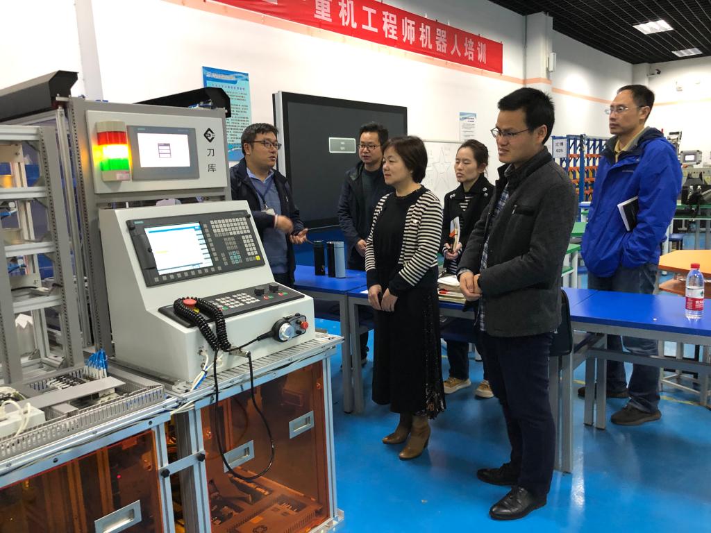 会后,张正春一行参观了工技校校区智能制造实训中心。合作交流中心主任徐叶军、人工智能学院副院长陈强等陪同参观。