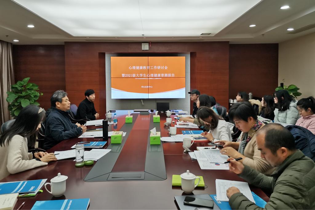 12月14日上午,我校心理健康工作研讨会暨2021大学生心理健康普测报告会在至德楼A407召开,副校长吕中起,学生发展中心相关负责人,各二级学院副书记、心理辅导员及心理中心教师参加会议。会议由学生发展中心副主任王艳主持。