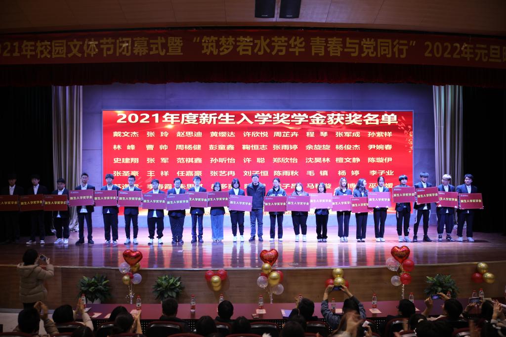 学校副校长吕中起宣读了2021年度新生入学奖学金获奖名单,学校6个二级学院党总支书记、院长分别为奖学金获得者进行了颁奖。