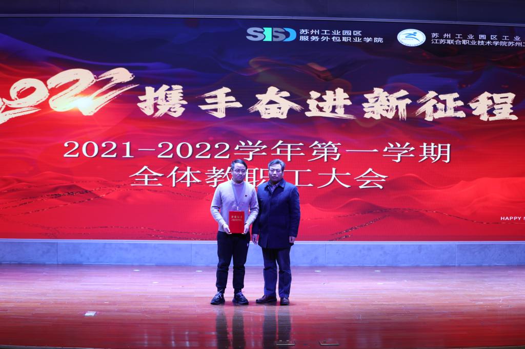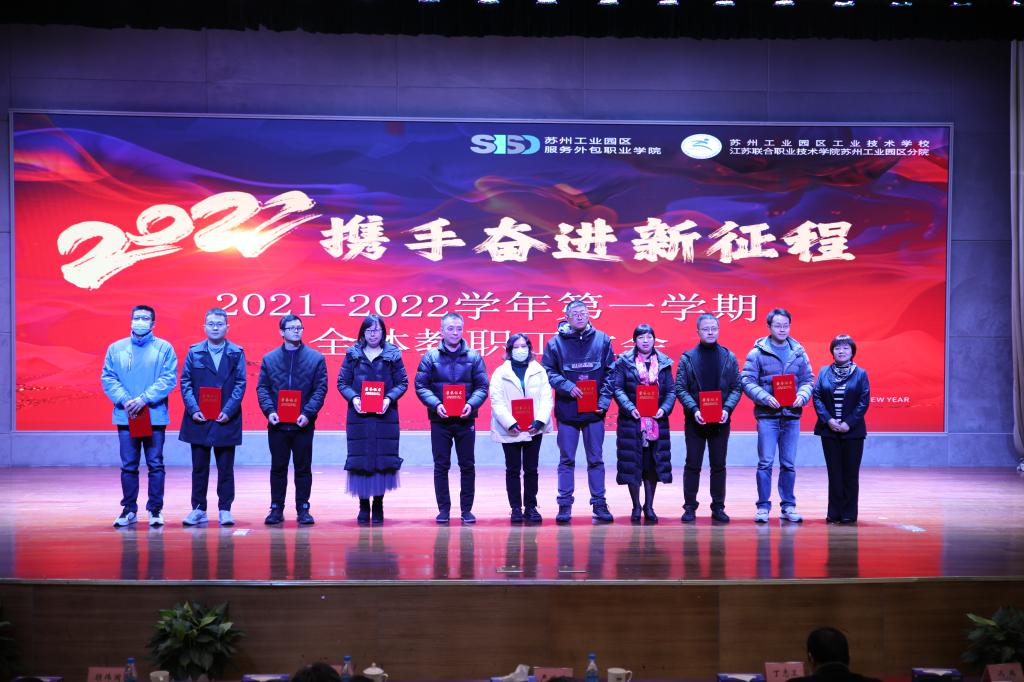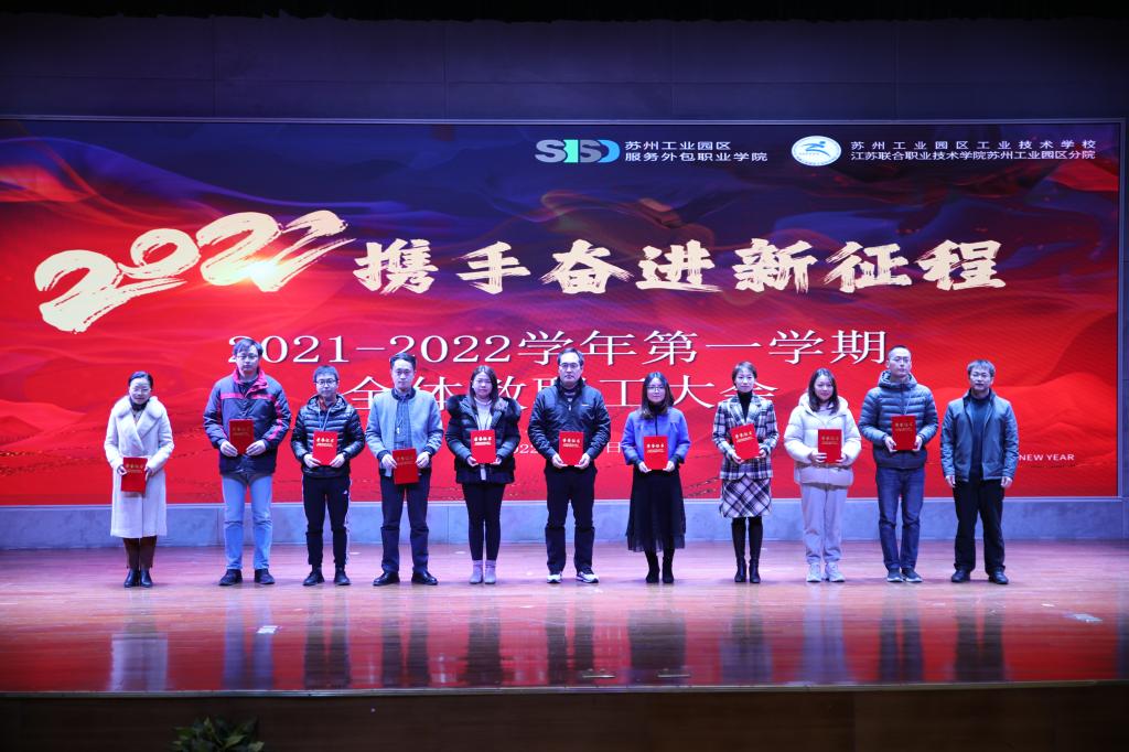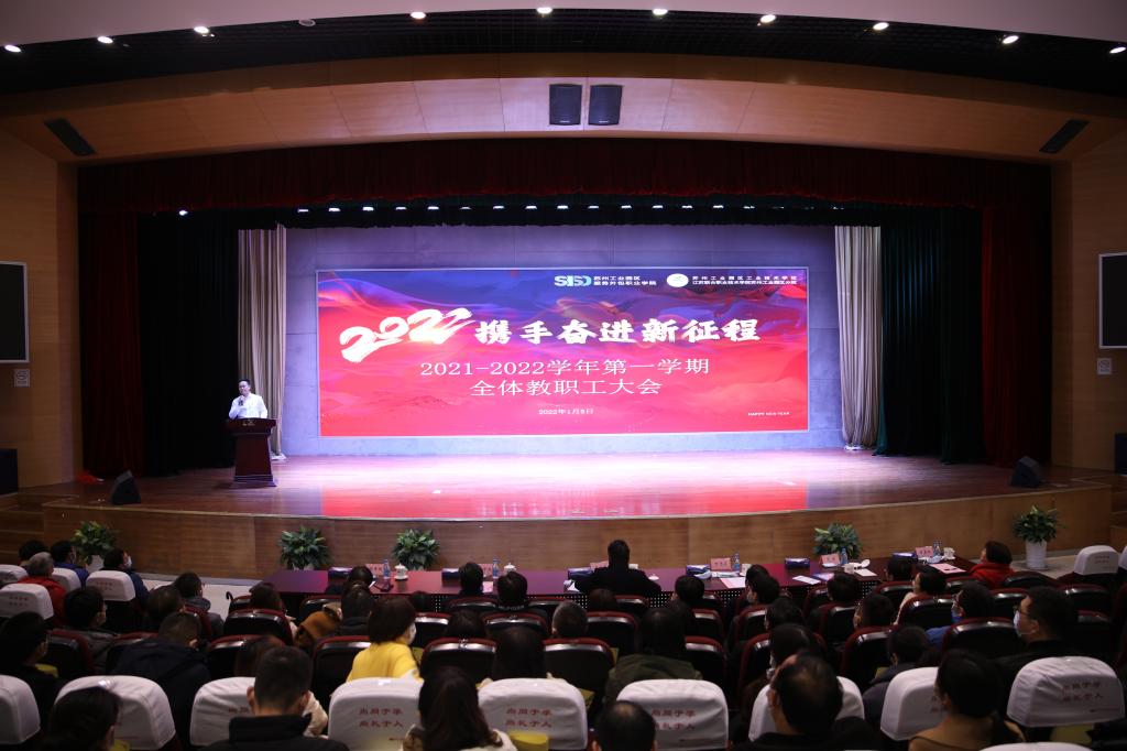 1月5日下午,苏州工业园区服务外包职业学院、工业技术学校2021-2022学年第一学期全体教职工大会在服务外包学院校区槎轩楼D205报告厅召开。学校党委书记、校长严世清,副校长吕中起、丁志卫、顾伟国、冯瑞、强晏红及全体教职工参加。会议由服务外包学院校区事业发展中心主任赵强主持。