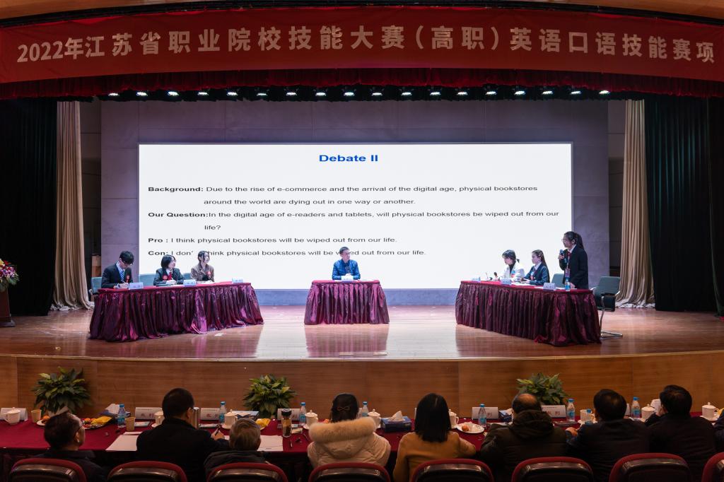 1月9日上午,2022年江苏省职业院校技能大赛(高职)英语口语技能赛项决赛在我校槎轩楼D205报告厅举行。48名晋级决赛的选手同场比拼、展示风采。200余名师生进行了现场观摩。
