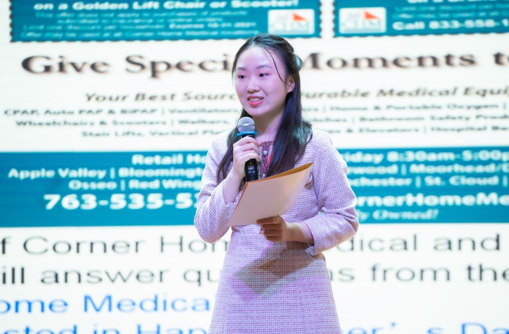 决赛分为情境交流和即席辩论两个环节。在情境交流环节中,选手们会现场抽取到一张海报图片的题目,内容涉及教育机构线上中国文化体验营、父亲节医疗器械营销等主题,选手们在充分理解图片信息的基础上,模拟职场角色,并和现场的提问官进行一对一的主题交流,回答提问官的提问。