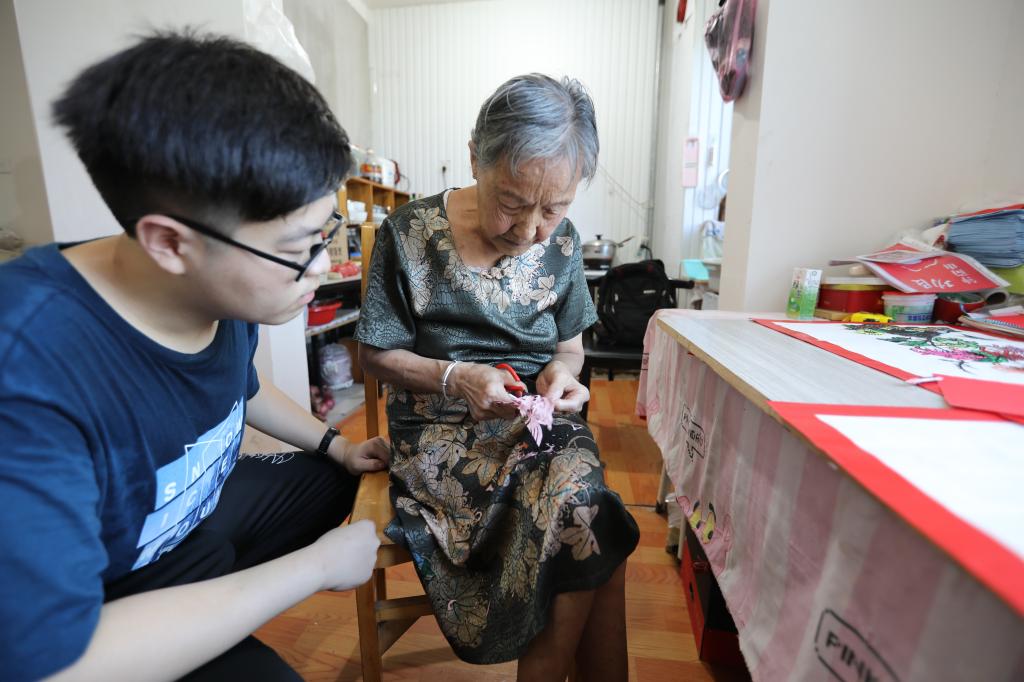 在文荟苑社区的社区治理实践中,实践团队拜访了麦秆画非遗传承人、剪纸达人封引凤阿姨。在封阿姨家中,一幅幅精美的非遗工艺作品让实践团队成员印象深刻。团队成员与封阿姨促膝长谈,了解到了封阿姨正在创作的作品名为《喜迎二十大、幸福向未来》,作品生动地表达了党的领导下祥和、繁荣的场面,青山绿水铸造了我们的幸福家园,航母北斗卫星彰显了我们的强国梦。封阿姨激动地说:“这幅作品正是表达了我自己内心的想法,党的二十大即将召开,我们的生活越来越好,我内心非常开心,我想通过我自己的手艺,用这幅作品来表达。”