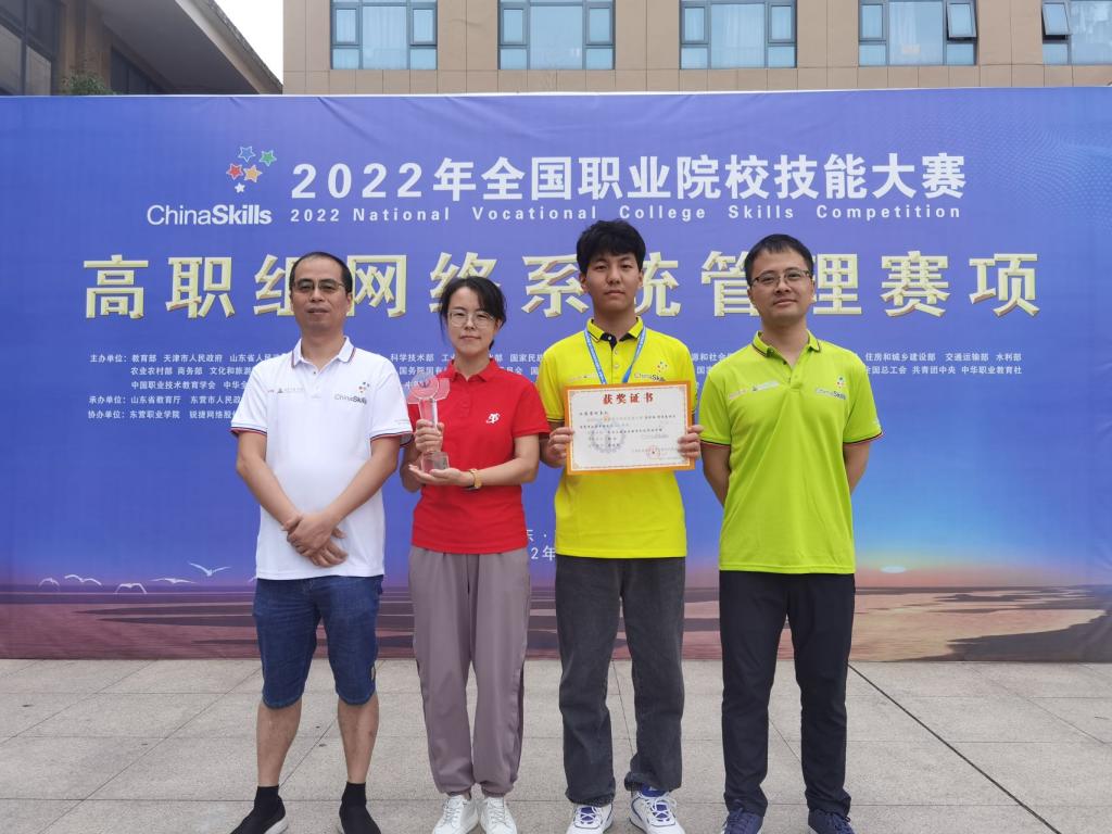 8月20日至25日,在东营职业学院举行的2022年全国职业院校技能大赛高职组“网络系统管理”赛项中,我校信息工程学院师生团队在与全国60支队伍的激烈竞争中,一举夺冠,获得全国一等奖第一名,创造了本赛项的最佳战绩。