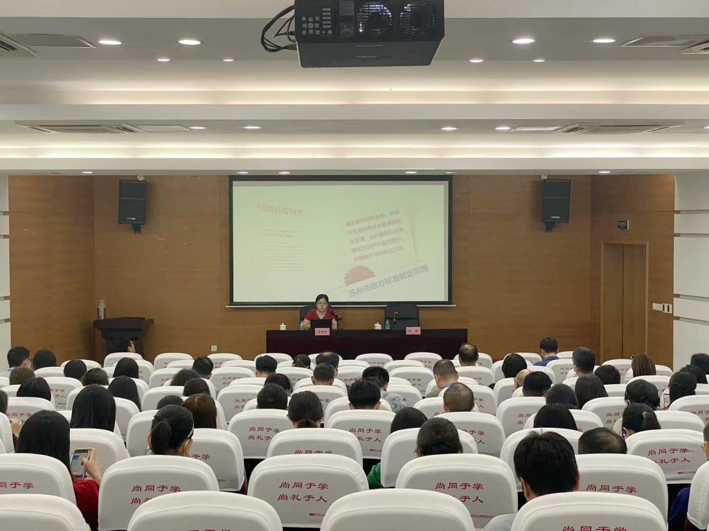 为了进一步提高我校科研人员参与制修订标准的规范化和科学化水平,9月1日下午,由科研处举办的《标准制定流程解读》主题讲座在槎轩楼D104举行。讲座特邀苏州市市场监督管理局标准化管理处专家对苏州地方标准制定相关流程与注意事项进行了详细讲解。此次讲座吸引了来自各二级学院近百位教师参加,讲座由副校长冯瑞主持。