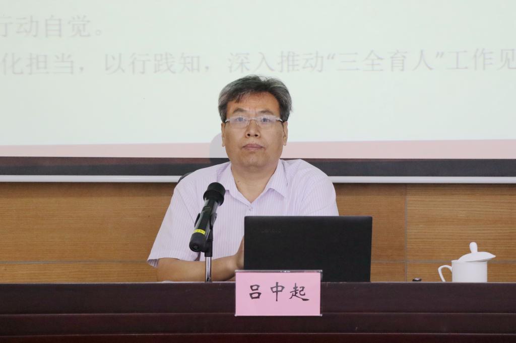 吕中起做了题为《三全育人五育并举建设双高强校培养出彩师生》的专题报告,并结合“水润德育”核心理念为全体干部阐释了“德育铸魂,润品启德至真善;智育固本,润智增识至渊博;体育强健,润心修身至健康;美育熏陶,润情涵美至高雅;劳育淬炼,润行促能至养成”五润并举、五维共育的育人体系。