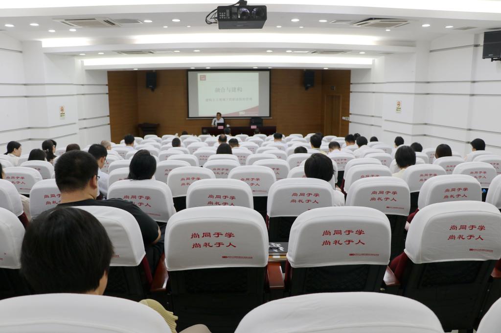严世清从“世界观的进化”“皮亚杰的建构主义思想”“维果斯基的社会建构主义理论”“融合与建构”四个方面为全体干部解读了“建构主义视野下的校园管理”,希望干部从学校融合发展实际全面理解校社政企、部门干群间的互动性与融合;正确认识制度的建构属性,明确要确立共同目标,制定行动方案,从矛盾走向融合;认真做好干部工作,从“知多者、高级思维、确立发展目标、搭好脚手架”四个方面不断提升综合素养;科学解读社会关系的建构,理解同化与顺应之理;理性对待社会组织体的解构与重构,并接受不完美的事物在互动中寻求平衡。最后,严世清强调差异比共性重要,世界因差异而美好,呼吁全体干部多一些换位思考意识,努力促进学校融合建构,推动学校“双高”建设,加速职业教育改革发展。