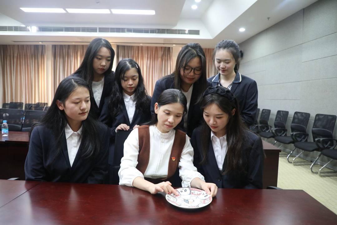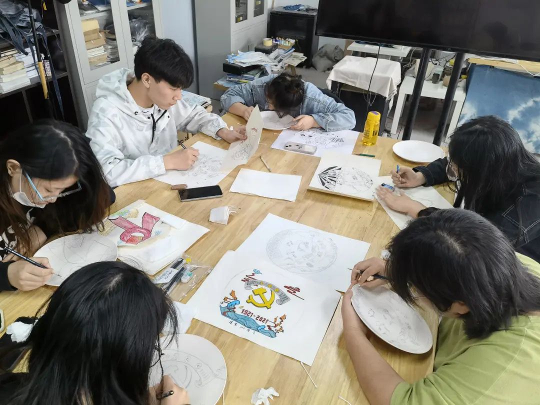 绘画底稿、上色、喷釉……10月12日下午,学校举行了一堂以“奋进新时代”为创作主题的师生共绘研学活动。师生们选取党的十八大以来的10年中,政治、经济、科技、制造、航天等方面取得的重大成就作为创作元素,由学生们在瓷盘上完成绘画底稿,教师完成填色工作。数字艺术学院教师任菲向大家介绍了釉下彩绘的工艺流程和注意事项,并示范如何上色和喷釉。在师生的共同努力下,20多件绘有中国特色的精美瓷盘呈现在大家眼前。