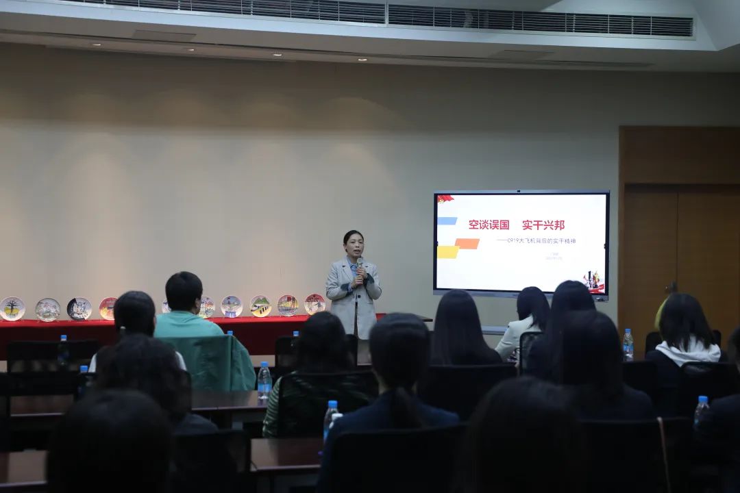 作品展活动中,机关第二党支部教师丁淑彦做了“空谈误国 实干兴邦”主题微党课,讲述了C919大飞机背后的实干精神,启迪师生弘扬追求卓越的工匠精神,为实现社会主义现代化强国汇聚实干兴邦的磅礴力量。