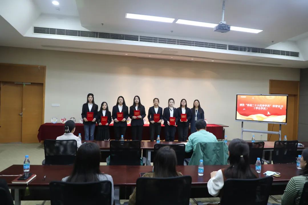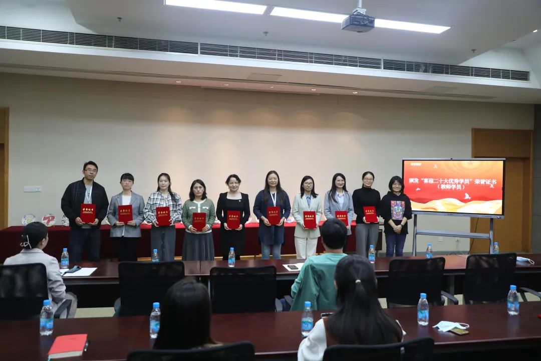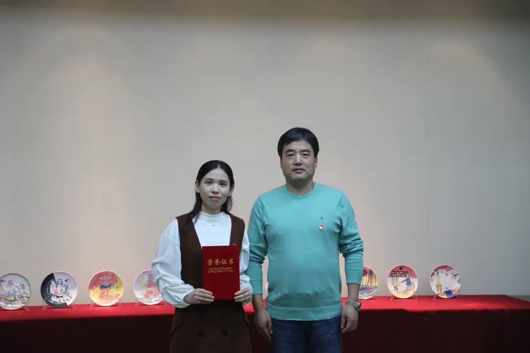 在10月14日的陶艺作品展上,数字艺术学院党支部书记顾安平为学院教师任菲颁发了“喜迎二十大优秀指导教师”荣誉证书;组织委员朱轩樱为学生们颁发了“喜迎二十大优秀学员”荣誉证书;文艺委员朱晓莉为教师们颁发了“喜迎二十大优秀学员”荣誉证书。顾安平表示,2012-2022这十年,是催人奋进的十年。我们惟有不懈奋斗、永不停滞,惟有继往开来、砥砺前行,才能把职业教育事业推向前进,才能创造更加美好的生活。