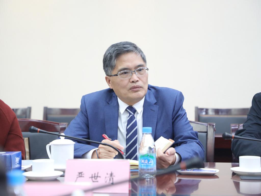 双方在言子楼B416召开座谈会。严世清围绕学校的发展历程、融合之路、专业设置、人才培养方向、办学成果等作了介绍。同时,他介绍了我校坚持高质量发展和积极开展技能人才培训培养的主要概况,并对目前存在问题和我校在数字化人才培养规划作了汇报。