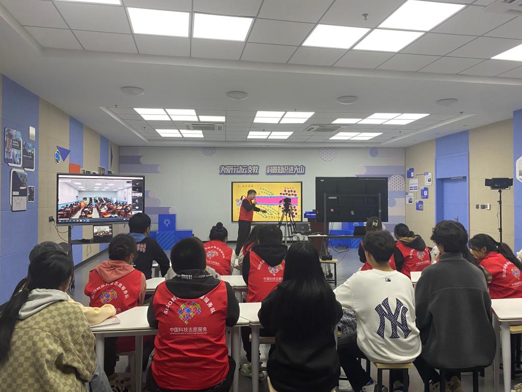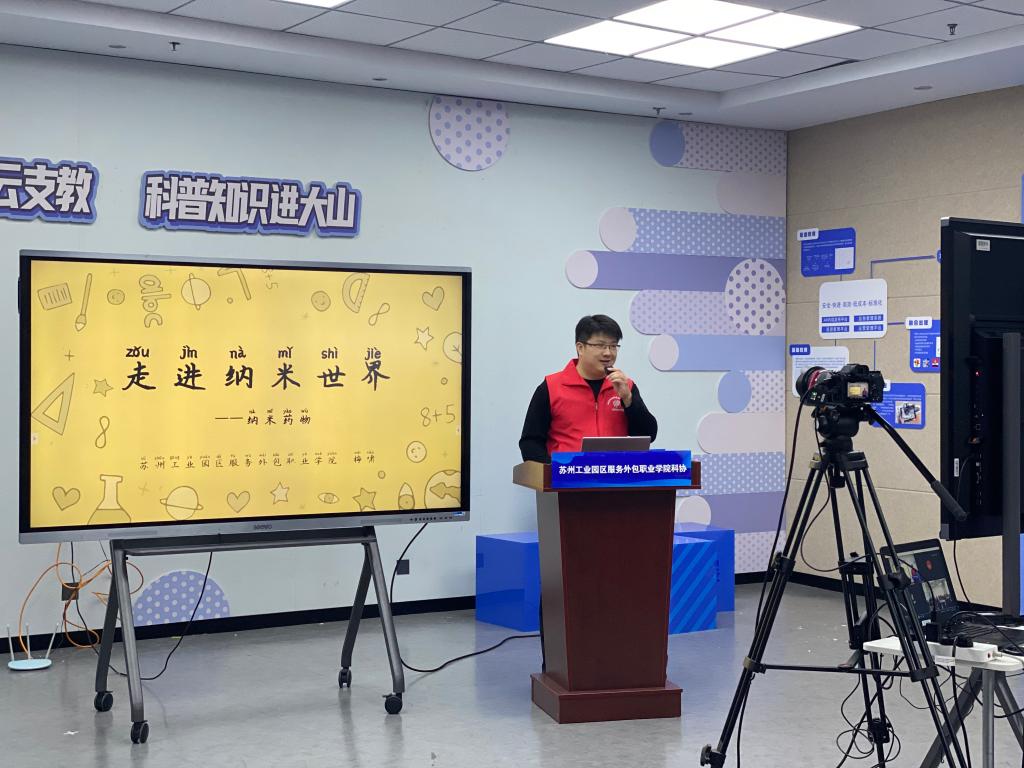 11月18日下午,言子楼B414教室呈现出一片繁忙景象,生物科技学院教师梅啸正在通过线上会议平台为贵州山区的孩子主讲一堂题为《走进纳米世界》的科普直播课。这是我校科协主办的《空中科普课堂》第一期活动,该活动获得了中国科协“翱翔之翼”大学生科技志愿服务项目立项。来自校科协、青协的大学生科技服务志愿者参与了活动,活动得到了校团委、苏州工业园区迎春花爱心联合会的大力支持。