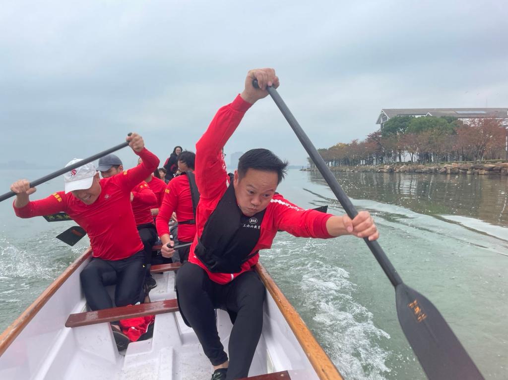 在龙舟比赛中,我校龙舟教工俱乐部与参赛队伍展开激烈角逐,他们整齐划一,奋力挥桨,无惧风浪,勇往直前,再一次展现了新时代高职院校职工的精神风貌,彰显了学校龙的传人、龙舟文化传承、龙舟传奇的“三传精神”以及“团结拼搏、奋勇争先”的龙舟精神。