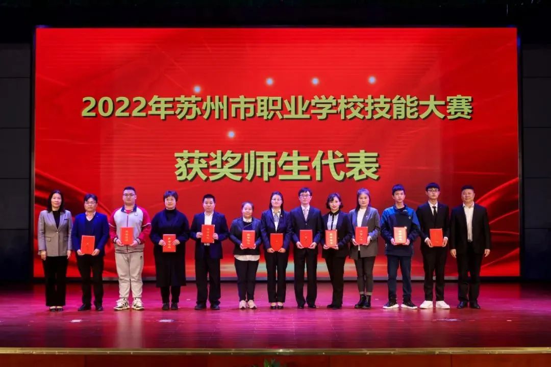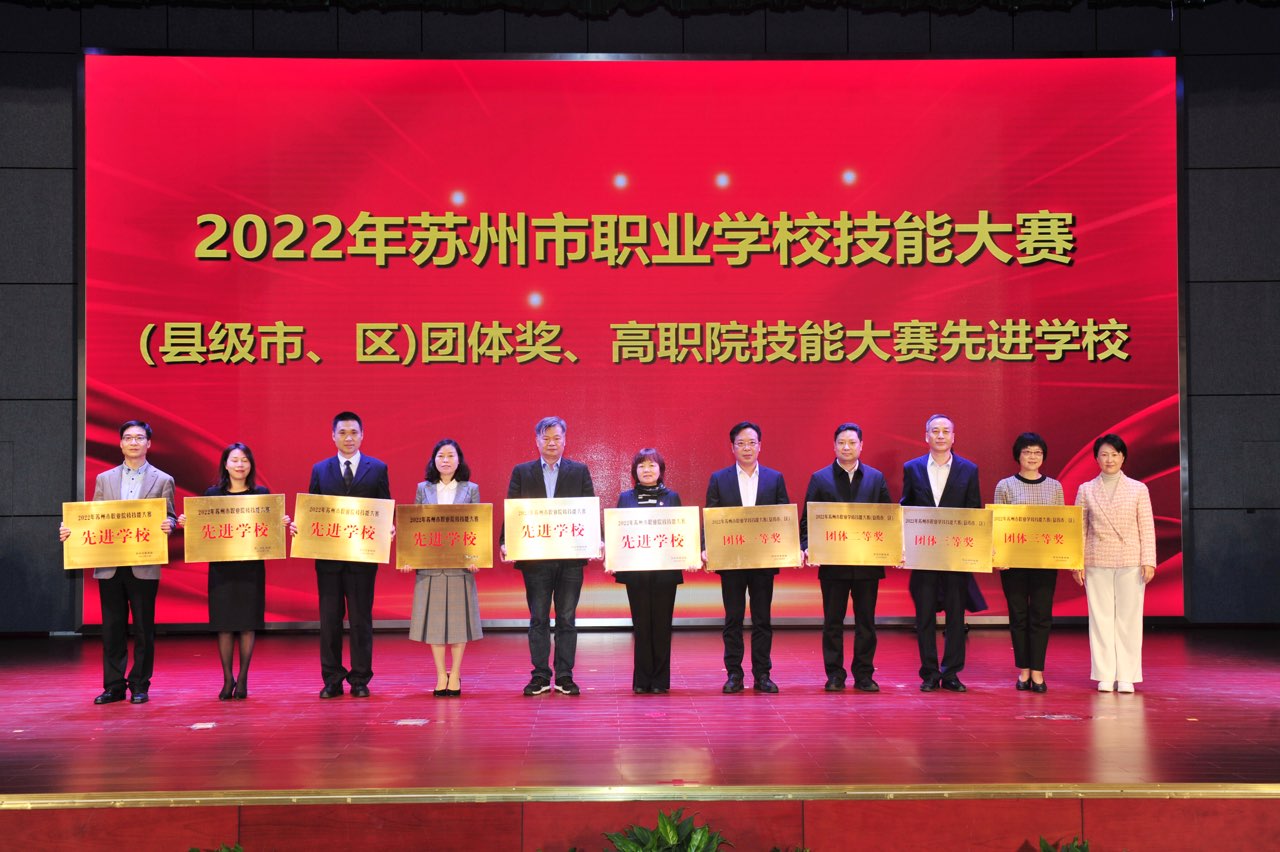11月25日下午,苏州市职业教育高质量发展推进会暨2022年苏州市职业院校技能大赛总结会在江苏省吴江中等专业学校举行,我校副校长强晏红、教务处处长张杨参会。大会对2022年苏州市职业院校技能大赛获奖团体和个人进行了表彰和颁奖,我校获“2022年苏州市职业院校技能大赛先进学校”称号;谢留婉、孙伟老师获“苏州市职业学校教师技能标兵”称号;孙伟、陈沙沙老师获“苏州市技术能手”、“苏州市青年岗位能手” 及“金牌员工”称号;陈沙沙老师获“苏州市巾帼建功标兵”称号。