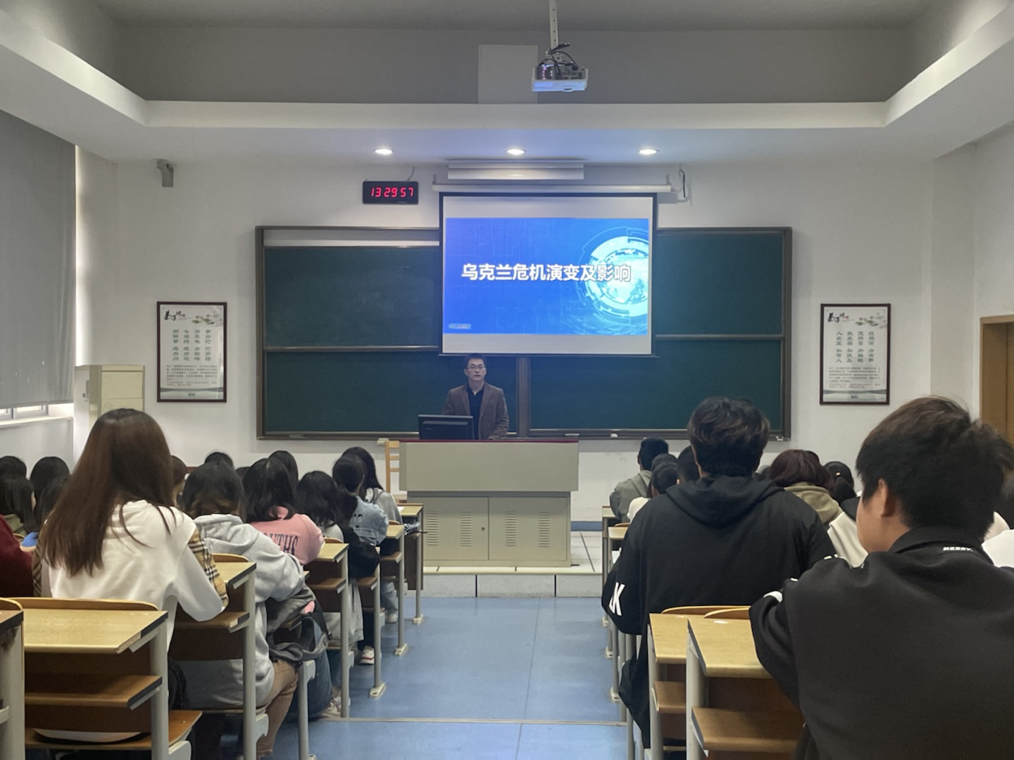 11月,我校党委领导班子成员根据课表安排,结合当前国际国内形势,给学生开讲《形势与政策》课。他们以翔实的数据、严密的逻辑、生动的案例,帮助学生全面认识国情、世情、党情,鼓励学生勇担时代重任,把自己的理想追求和个人奋斗自觉融入国家富强、人民幸福、民族复兴的伟大事业中去,让青春在不懈奋斗中绽放绚丽之花。