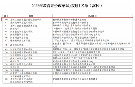 2022年12月30日,省教育厅办公室公布了2022年教育评价改革试点项目,经单位申报、专家推荐、业务评议、网上公示等程序,我校《教师绩效考核评价的智慧大脑建设》成功入选。