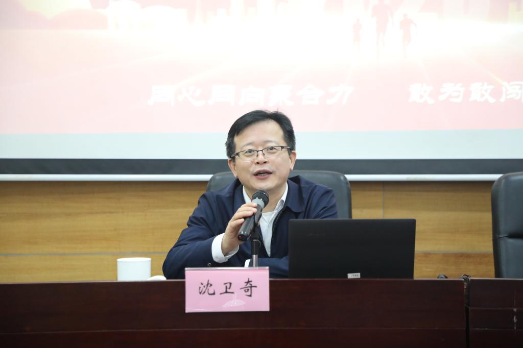沈卫奇以“弘扬四敢精神 丰富园区经验时代内涵”为题,结合园区建设的大量案例和故事为大家生动解读了园区经验内涵与园区精神。同时,对学校近年来的发展及为当地社会做出的贡献表示了充分的肯定,号召学校弘扬“四敢”精神,激励广大干部把“敢”的精神体现在干事创业的作为担当上,把“敢”的劲头集中到破解发展难题、提升发展质效、开辟发展新局上,以一往无前的奋斗姿态,风雨无阻、拓荒奋进的精神状态,聚焦学校高水平建设,推动学校高质量发展,通过实际行动为园区建设扛起新使命、谱写新篇章。