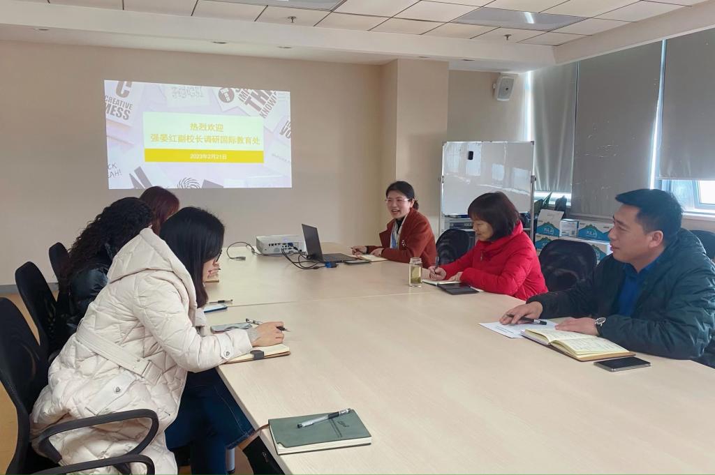 2月21日,我校副校长强晏红赴国际教育处进行调研,国际教育处处长付维伟及部门全体人员参会。