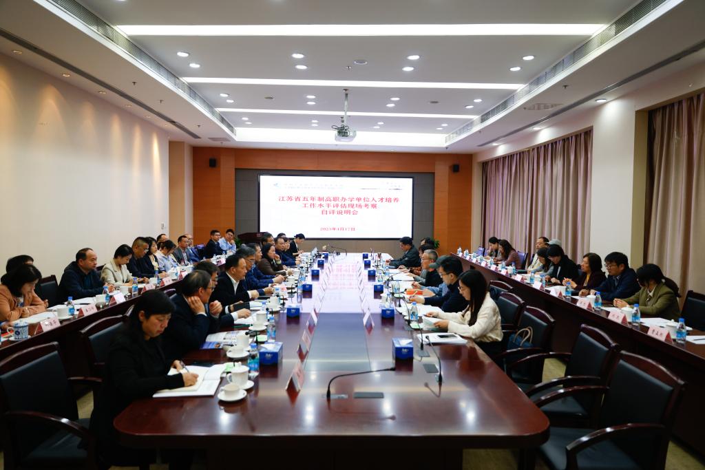严世清作评估自评报告,从分院概况、分院人才培养工作水平自查情况、分院人才培养工作主要特色与成效、存在的问题及整改措施等四个方面作了汇报。他表示,分院高度重视人才培养工作评估,深入贯彻《省教育厅关于推进五年制高等职业教育高质量发展的意见》,将五年制高职人才培养工作水平迎评工作纳入工作计划,对标评估指标体系,遵循“以评促建、以评促改、以评促管、评建结合、重在建设”的方针,扎实推进五年制高职人才培养内涵式、特色化发展,全面提升人才培养质量,对照6个分项指标、20个基本要素,自评达成情况为“全A”。作为江苏省高水平示范性职业学校、国家级重点中等职业学校,分院创新办学理念,科学谋划分院发展;强化基础能力建设,增强发展后劲;服务区域产业发展,彰显办学特色;锻造一流师资队伍,厚植发展优势;聚焦职业素养提升,赋能学生成长;提升社会服务能力,建构办学特色,被认定为江苏省高水平现代化职业学校、江苏省现代化示范性职业学校,并获评江苏省职业学校教学管理30强。