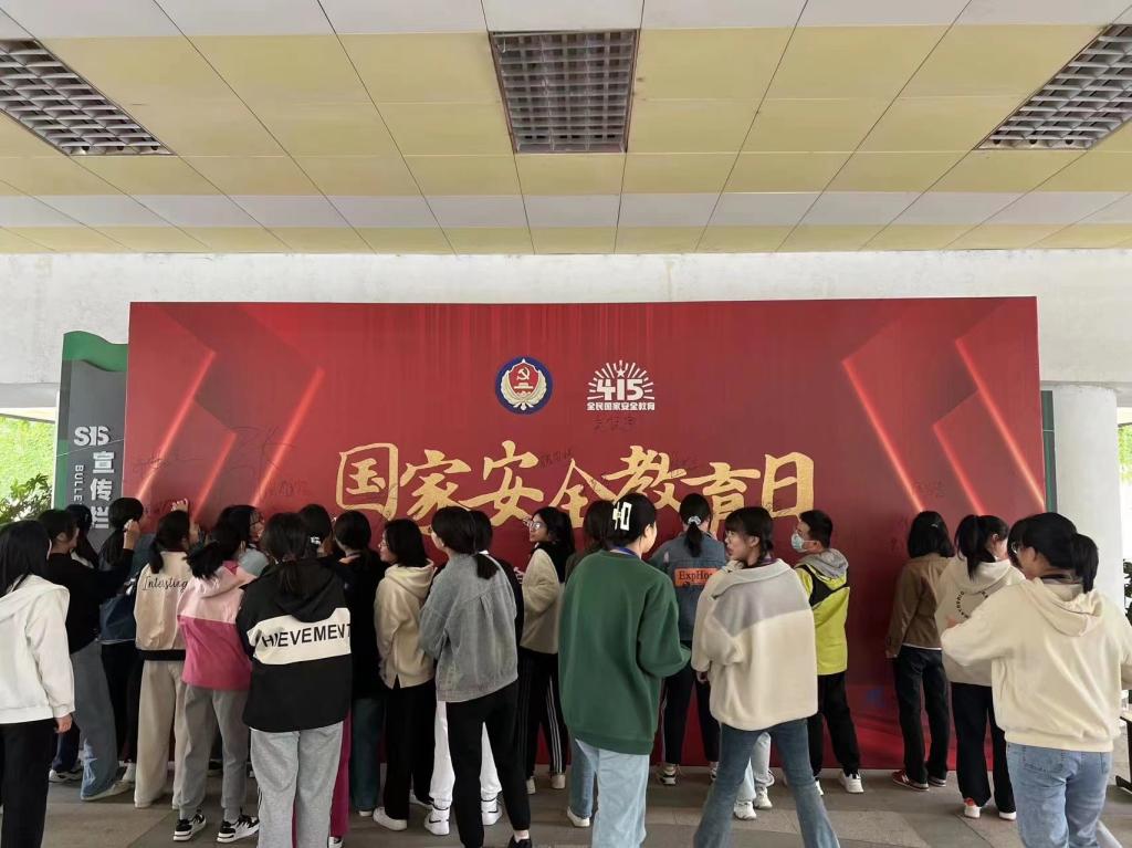 为了加强人人参与、人人可为的国家安全教育,我校悬挂宣传条幅、制作专题宣传展板摆放于至德楼大厅、下沉式广场、餐厅等师生员工经常出入的地方,利用校园电子屏滚动播放安全教育宣传画和国家安全公益宣传片《答案》。同时,借助官网、官方微信公众号等渠道,发布全民国家安全教育日相关知识和视频学习资料,积极参加国家安全教育日的线上话题互动。