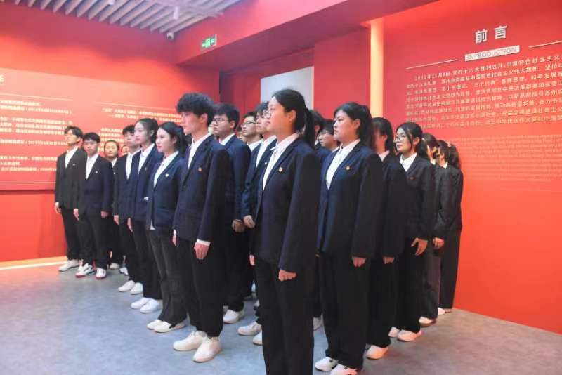 我校金融科技学院的学生、苏州工业园区律师行业的律师深情朗诵了《七律·人民解放军占领南京》《七绝·为女民兵题照》,以诗明志,传承革命精神,树立远大理想。活动结束后,全体人员80余人参观苏州革命博物馆主题展,了解苏州近十年取得的非凡成就。