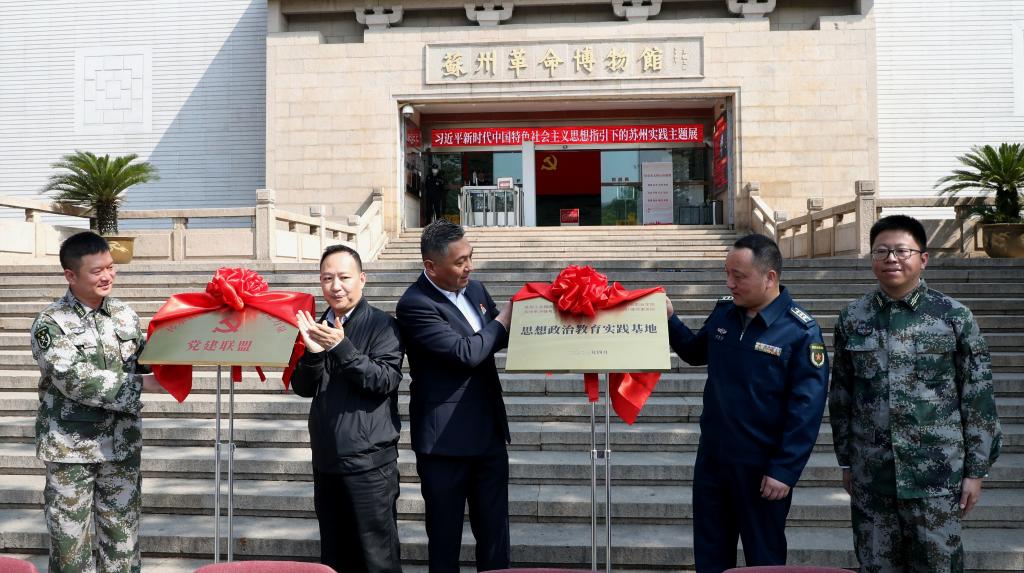 苏州革命博物馆党支部、苏州工业园区人武办党支部、苏州工业园区服务外包职业学院金融科技学院党总支、苏州市冲锋号少年军校党支部、苏州工业园区律师行业联合支部五方签署了共建协议,并为“传承胜利荣光凝聚奋进力量”党建联盟、“思想政治教育实践基地”揭牌。党建联盟以支部共建为切入点,搭建革命纪念场馆、部队、高校、军校、企业等多方参与的合作平台。联盟成员将充分发挥各自优势,推动苏州红色教育向更广更深的领域迈进。