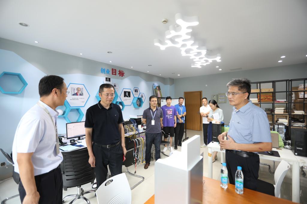 倪乾一行实地考察学校信息工程学院,深入了解“SISO-ICT产业学院”如何对接产业发展提供人才供给等方面情况;看望学校正在备战全国职业院校技能大赛的师生们,勉励大家精益求精,争取在比赛中取得优异成绩;之后详细了解了学校技术研发团队与园区生物科技企业合作完成的基于人工智能图像分析技术的“AI舌诊仪”。
