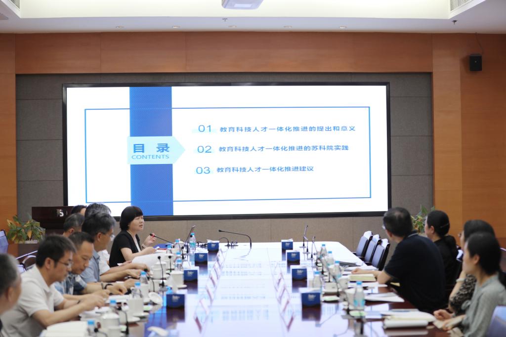 会上,倪乾传达了苏州市委常委、园区党工委书记沈觅专题调研苏州科技职业学院(筹)座谈会上的讲话精神,围绕推动学校高质量发展进行座谈。强晏红对学校教育科技人才一体化推进工作做了详细汇报。