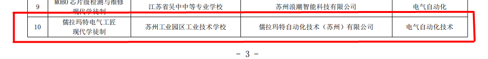 我校“儒拉玛特电气工匠现代学徒制”项目获批苏州市职业教育现代学徒制建设项目