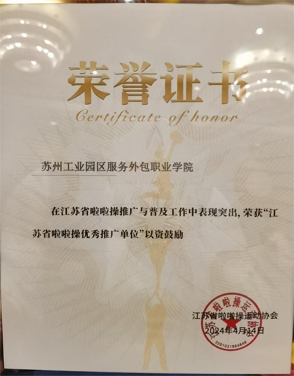 我校获得“江苏省啦啦操优秀推广单位”荣誉称号
