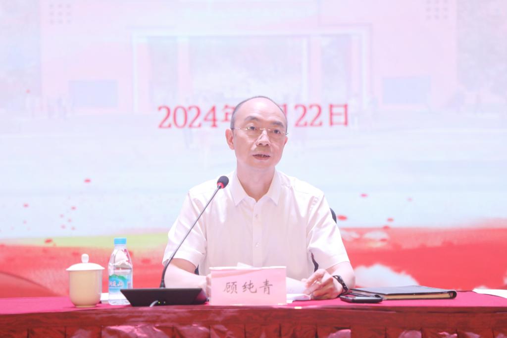 顾纯青在讲话中强调,当前,我们正处于科技浪潮奔涌向前,技术迭代日新月异,行业趋势不断变化,充满创新和变革的时代,这对职业教育人才培养、专业建设、校企合作、师资队伍建设等提出了新挑战,特别是对职业院校教师知识体系的更新、专业能力的提升提出了更高要求。在两校处于“双高”“双优”建设的关键时期,他期望全体教师尊重学校发展的历史过程,立足两校发展的新阶段,面向未来的发展目标,顺应职业教育发展的潮流,坚守“立德树人”的初心使命,秉承“顺进化之理 应未来之需”的校训精神,修身治学、开拓创新,凝心聚力、团结协作,勇于破解学校发展的难题,努力做职业教育改革的先行者与学生发展的引路人,为学校高质量发展作出贡献。