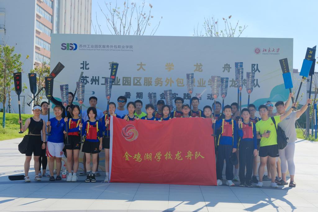 龙舟为媒,实践育人。我校与北京大学龙舟队自2022年建立长期良好合作关系,常态化开展联合训练、志愿共建活动。今年暑假,应我校邀请,北京大学龙舟队教练吴昊老师及20名学生来到我校开展为期数十天的龙舟集训及文化学习交流活动。本次暑期实践交流活动,不仅丰富了两校学子的暑期生活,共同推动龙舟运动在大学生群体间的普及与发展,也为两校之间的合作与交流搭建了新的桥梁。