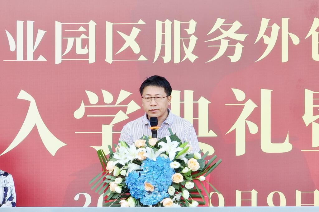 教师代表刘玉升寄语新生要有“强国有我”的情怀、锐意进取的毅力和勇于担当的品质,勉励全体新生在外包学院的舞台上,不负韶华、不负青春、演绎自己的精彩人生。