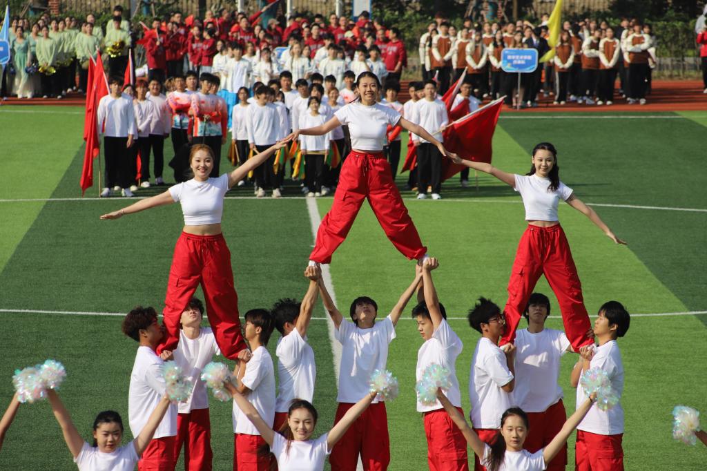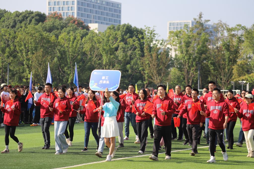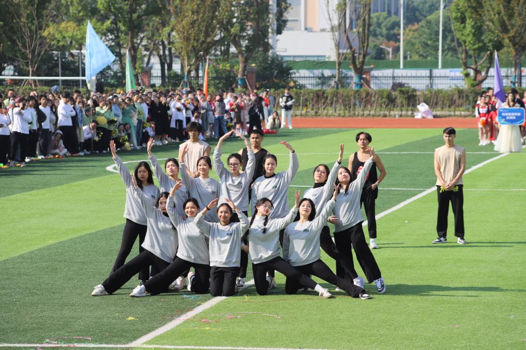 紧接着,教工代表队、六大学院及国际学院代表队方阵分别用各具特色的形式步入场地。教工代表队步伐铿锵、口号响亮,彰显了我校教职工争创一流的精神状态。六大学院代表方阵别出心裁的队列造型、青春活力的口号、创意十足的队列表演,既展示了学院的专业特色,又充分体现了我校学子多才多艺、意气风发的一面。国际学院代表方阵带来了极具异域风情的舞蹈,赢得了现场阵阵掌声。师生们用精彩纷呈的舞步、歌声和造型展现了昂扬向上、追求卓越、朝气蓬勃的精神面貌。
