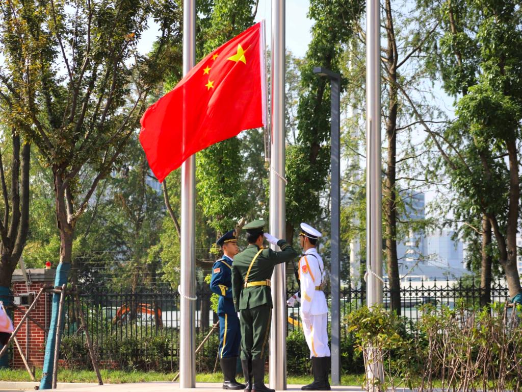 在所有师生的注目下,现场奏响了激昂的国歌,举行了庄严的升旗仪式。