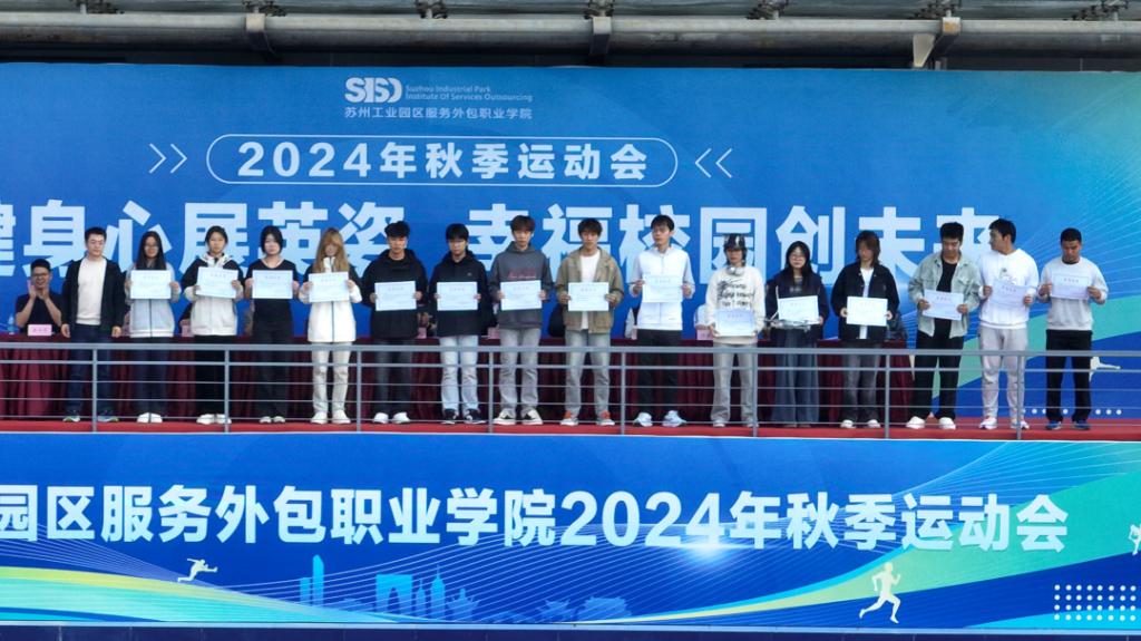 学工处处长陈永花为获得“体育道德风尚奖”的生物科技学院颁奖;教务处处长蔡炳育为获得“优秀组织奖”的智能管理学院、信息工程学院颁奖;冯瑞为获得“优秀运动员”的15名同学颁奖;丁志卫为获得“优秀班集体”的13个班级颁奖;权俊良为团体总分前三名的智能管理学院、金融科技学院、信息工程学院颁发了冠亚季军。