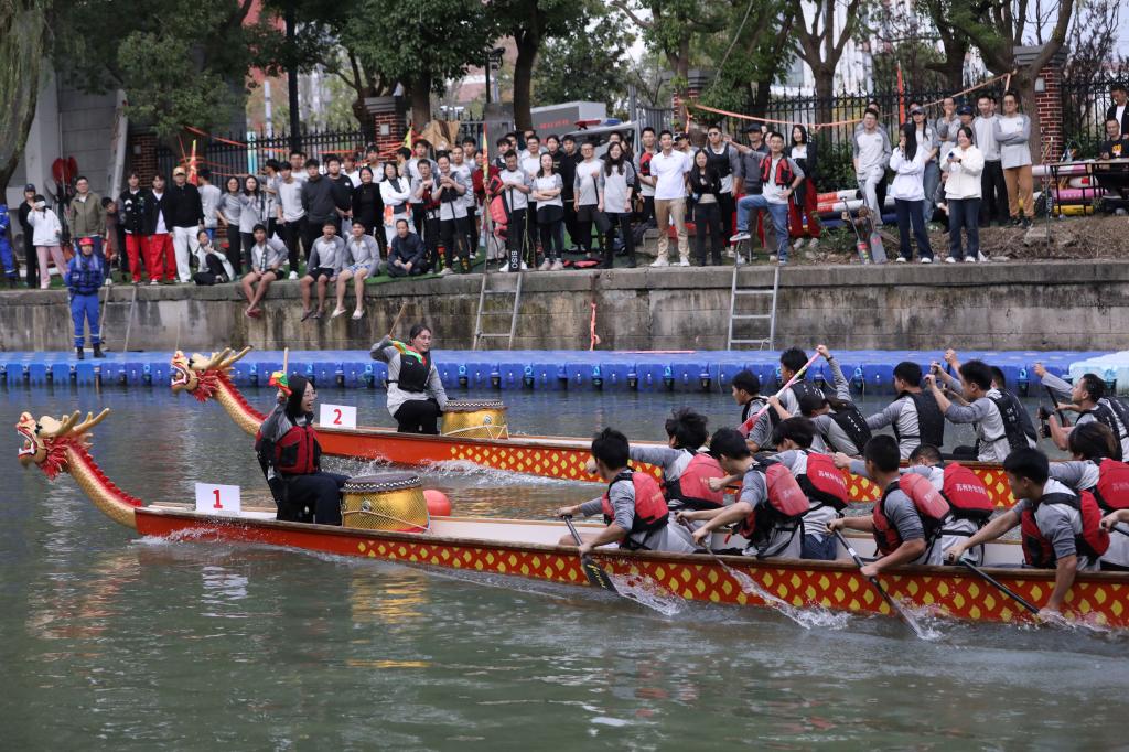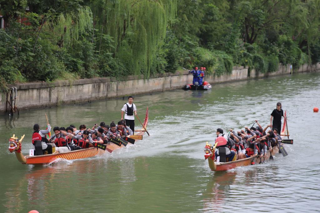 比赛开始后,伴随着激昂的鼓声,参赛龙舟如离弦之箭,迅速切入水面,在碧波荡漾的若水河上快速穿行,掀起层层浪花。水面上,龙舟你追我赶、竞相追逐;水岸上,观赛师生热情高涨,呐喊声、欢呼声一浪高过一浪,共同见证着这场速度与激情的水上盛宴。经过激烈的比拼,最终行政部门“孺子牛”龙舟队夺得冠军,“信智—信龙智航”智能管理学院、信息工程学院龙舟队获得亚军,“干啥都对”商务管理学院龙舟队获得季军。