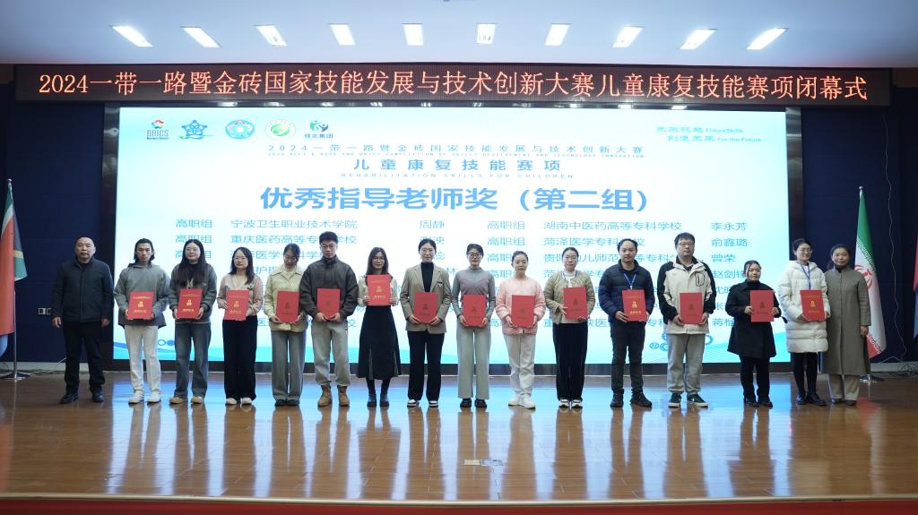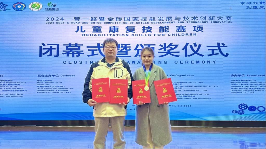 12月1日,2024一带一路暨金砖国家技能发展与技术创新大赛儿童康复技能赛项(孤独症智能评估与康复赛道)全国总决赛高职组在重庆医药高等专科学校落幕。我校智能管理学院陶文寅老师指导的智能产品开发与应用专业2023级学生徐樊与来自全国各地的40支队伍经过两轮比拼,荣获大赛二等奖(第5名)。
