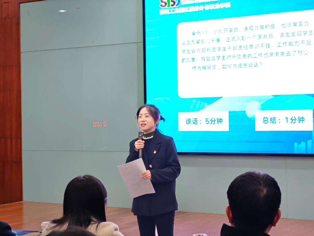 比赛结束后,校外专家羌坚代表评委组进行现场点评。她对我校本次大赛给予了高度评价与充分肯定。与此同时,她也指出了一些改进之处,例如辅导员在参赛过程中应做到多倾听、善表达、重总结,持续提升自身的沟通能力与应变能力等。
