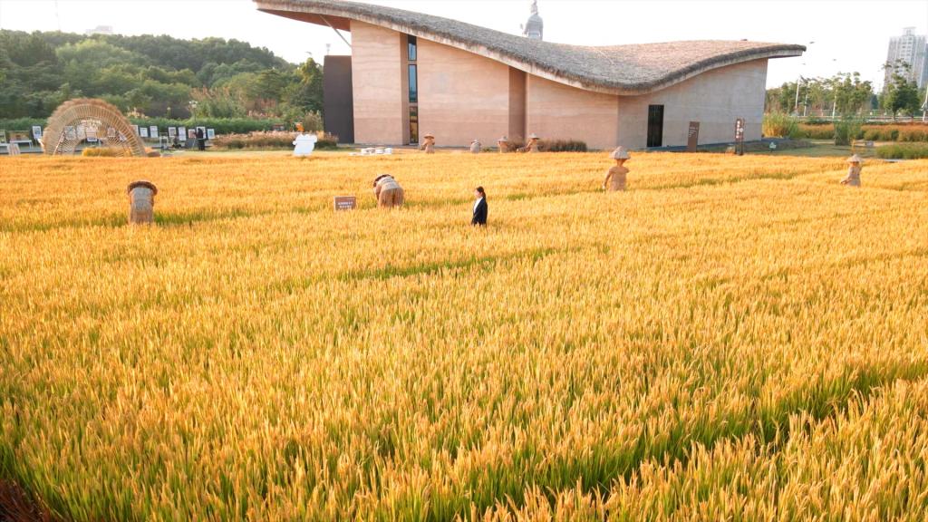 稻作文明的智慧之光。在讲解员肖静超的带领下,学生们首先走进了草鞋山遗址的核心区域。这里集合了时空之门、夷陵山、主题展厅、古水稻田场景复原等多个功能空间。肖静超详细介绍了草鞋山遗址的历史背景及其在考古学上的重要地位,为学生们揭示了长江下游地区新石器时代的文明进程。