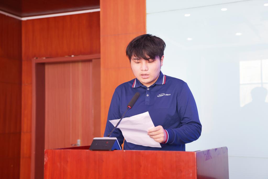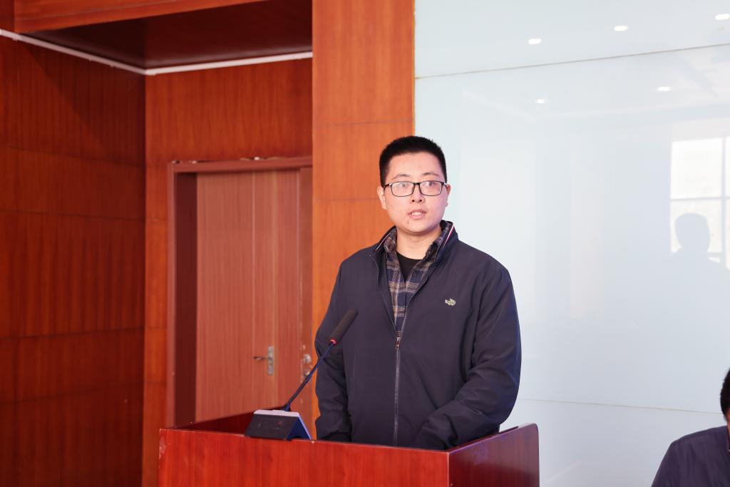 智能管理学院学生周俊杰作为学员代表发言,表达了对实训学习的期待与决心,承诺将认真学习、积极实践,努力将理论知识转化为专业技能,不辜负校企双方的殷切期望。