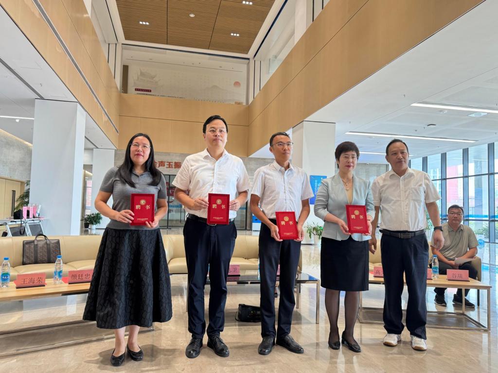在党建共建授牌环节,宋翠玲与立信会计出版社党总支书记赵新民共同签署党建共建协议。丁志卫代表学校向立信会计出版社授予“党建共建”牌匾,标志着校企党建合作迈入新阶段。随后,学校为来自多家知名企业的专家田久学、颜廷忠、高文亚、王海荣等颁发“产业教授”聘书,进一步充实了学院高水平“双师型”教学团队。
