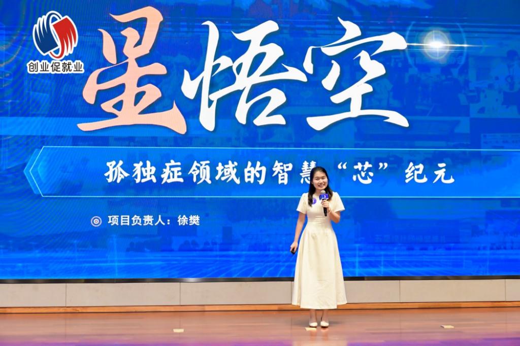 《星悟空——孤独症领域的智能“芯”纪元》项目由我校陶文寅、孙琳老师指导,团队负责人为我校智能管理学院学生徐樊,团队成员由跨专业、跨学科的优秀学生组成。该项目聚焦孤独症儿童康复需求,创新性地将人工智能技术与家庭康复相结合,通过可穿戴设备、具身智能机器人及数字康复课程等技术手段,助力改善孤独症儿童的社交障碍,提升家庭康复效果。目前,该项目已与多家康复机构、医院达成技术合作,致力于推动智能康复技术落地应用,帮助更多孤独症儿童融入社会。