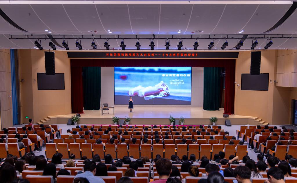 6月5日,苏州芭蕾舞团携《与古典芭蕾的碰撞》导赏演出走进我校,通过沉浸式艺术课堂带领师生穿越六百年芭蕾艺术史。苏州芭蕾舞团排练大师周瑾与演员们以现场讲解与专业示范相结合的形式,生动展现了芭蕾之美,彰显了“高雅艺术进校园”活动以美育人、以文化人的实践成效。
