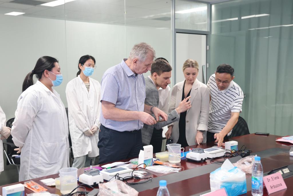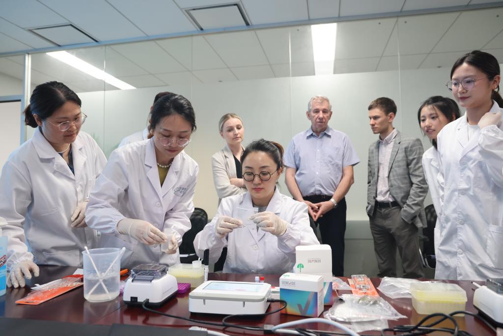 EmDEA 技术(酶介导双重放大技术)创新性整合恒温核酸扩增与恒温信号放大技术于同一反应体系,在保持高效核酸扩增的同时,单个扩增产物可产生 10000 个以上荧光信号,检测全流程仅需 20 多分钟,显著提升准确性与反应速度。活动现场,校企共建公共实训基地的技术人员演示了 EmDEA 技术应用及核酸快检系统操作流程,并为学生、相关企业人员及俄方技术人员开展实操培训。